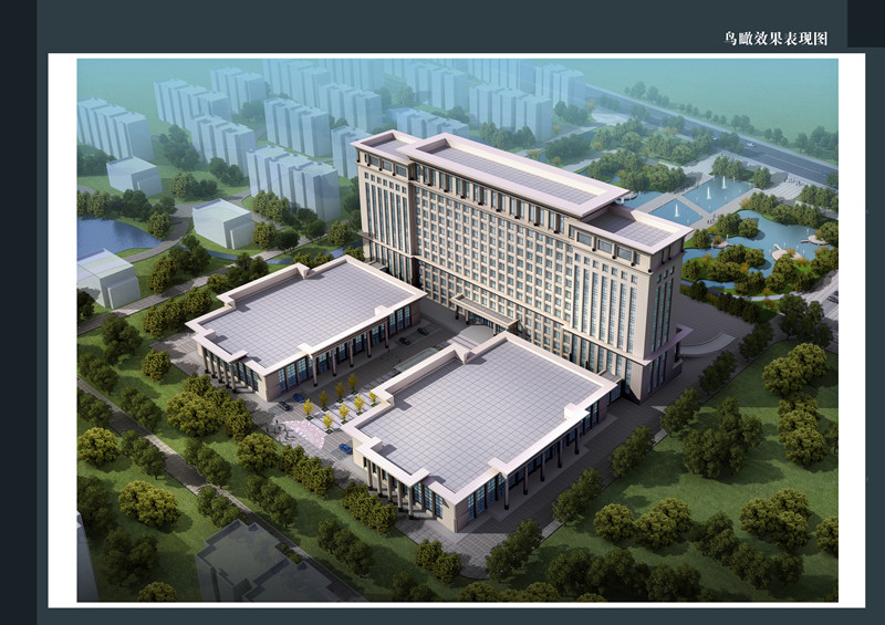 項目基地位于臨沭縣,四至均為政府規(guī)劃道路,交通及自然條件良好。本方案由辦公大樓、會議廳及公共配套服務三個主要體量構成。建筑師以地理位置劃分基地,既區(qū)分場所性質的內外之別,南北高低不同。以一高兩低的三個模塊,組織空間?;啬蟼扰c城市主干道聯(lián)系緊密,故把辦公大樓這一公共性強的功能排布在此,形成U型的多層建筑體量,舒展大氣。同樣,將功能性相對私密的辦公功能布局在基地的南邊。高層辦公樓,標準層平面呈U型,最大程度地爭取陽光及南向自然景觀。餐廳、咖啡茶座等公共配套服務用房則設置在前兩者的之間,以景觀草坡的形態(tài)展現(xiàn),既有效的組織了人流,又改善了公共空間品質。